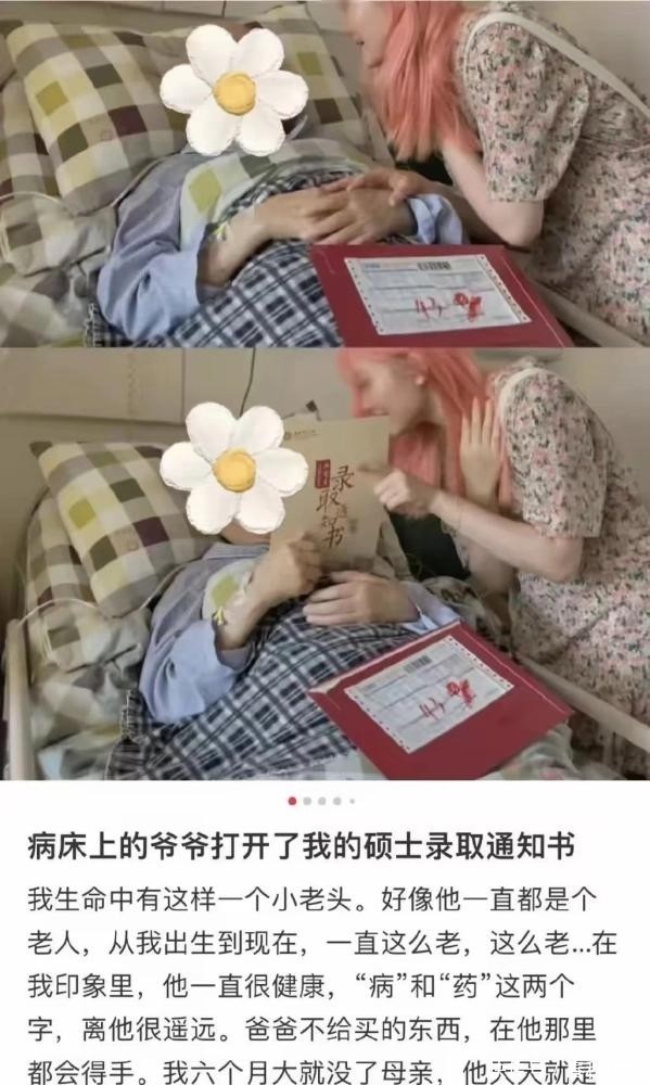 2022年,她染着一头柔和的粉色长发,手握研究生录取通知书,满怀喜悦地前往医院探望病榻上的爷爷。